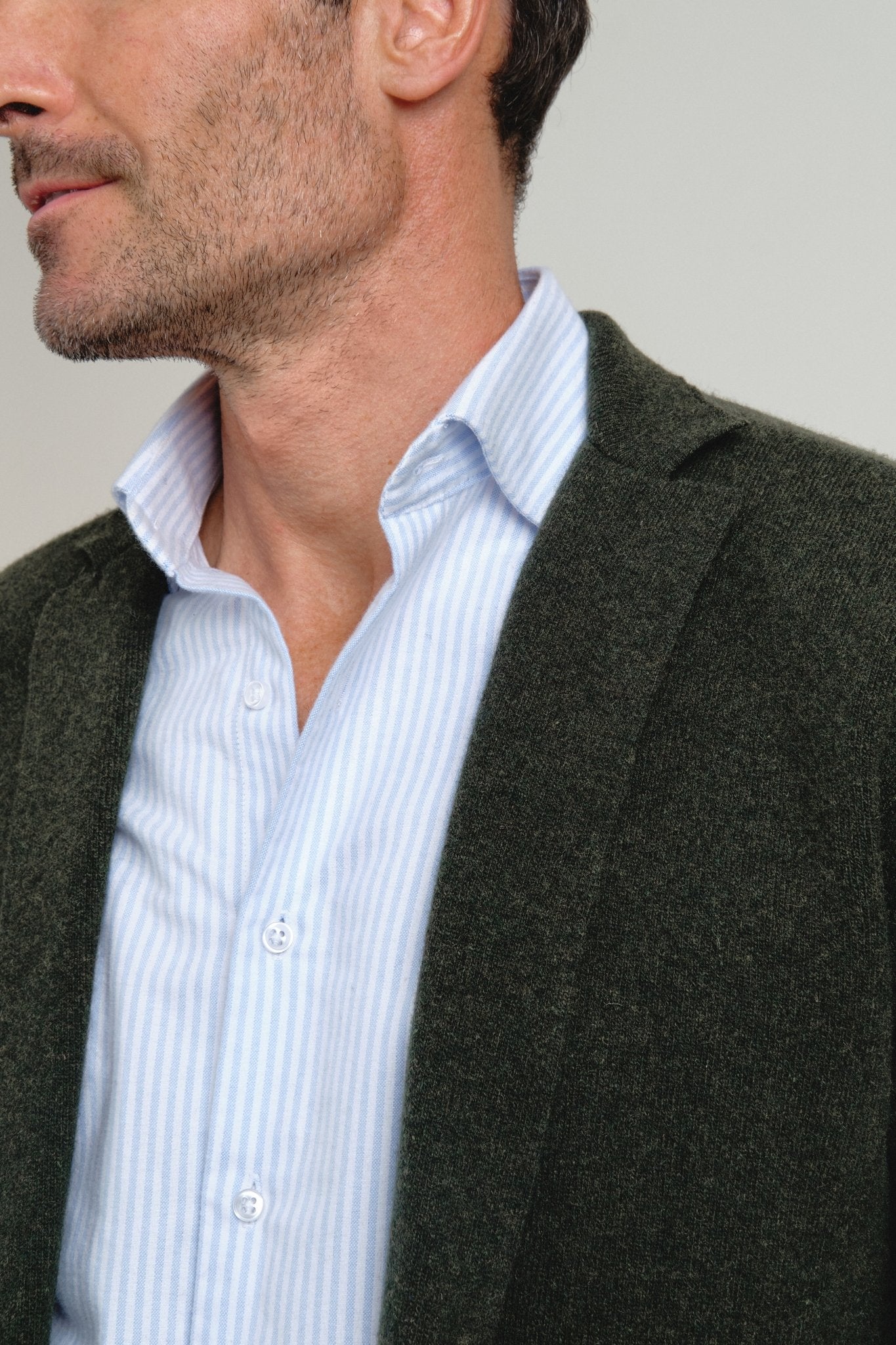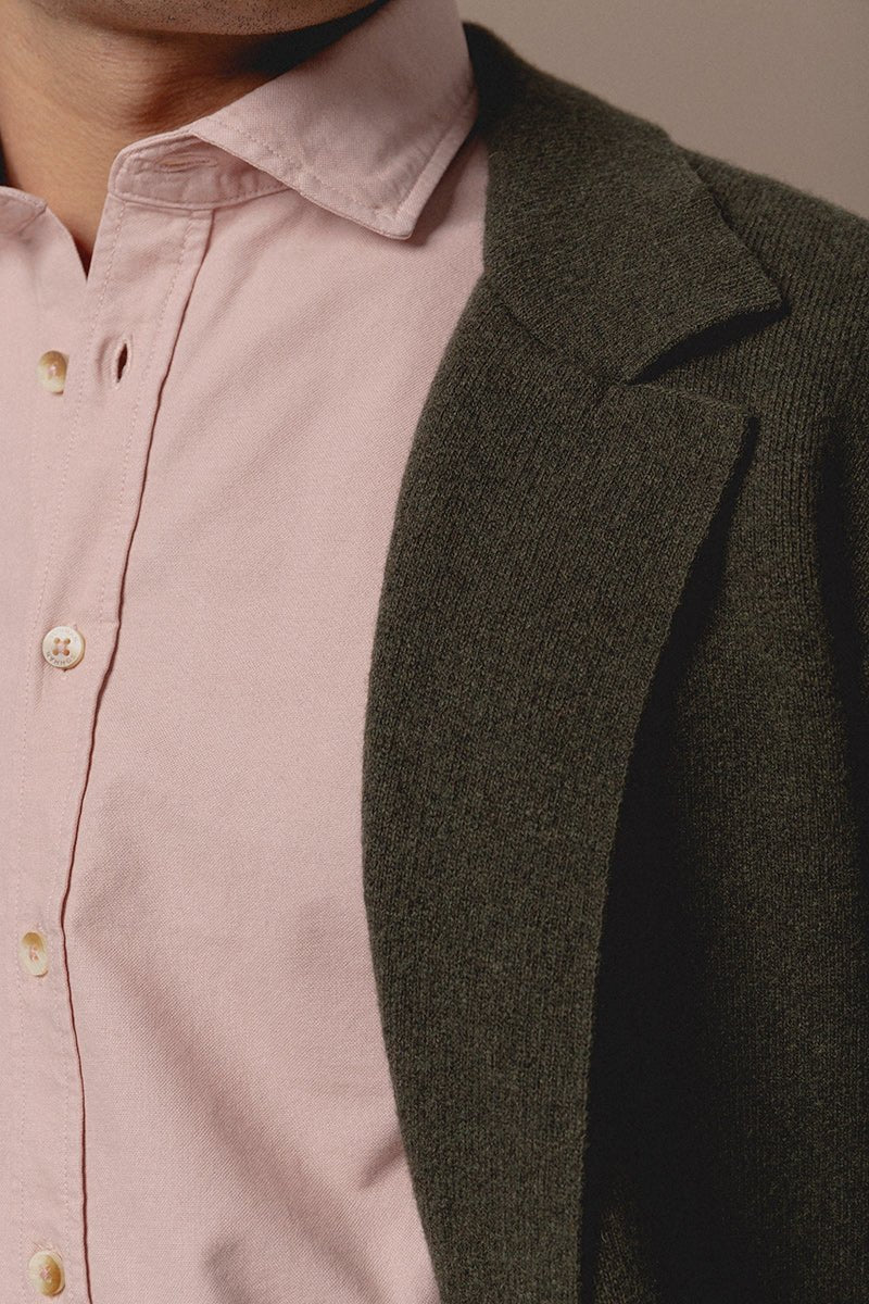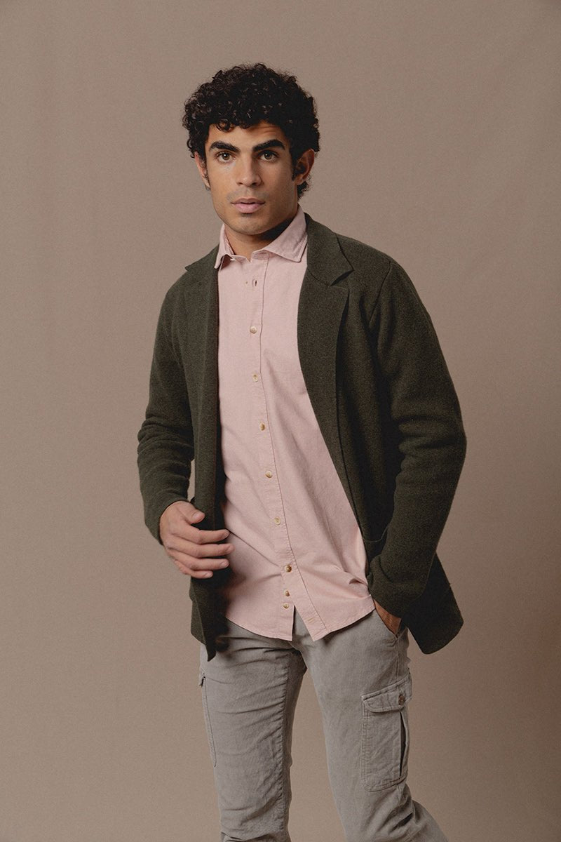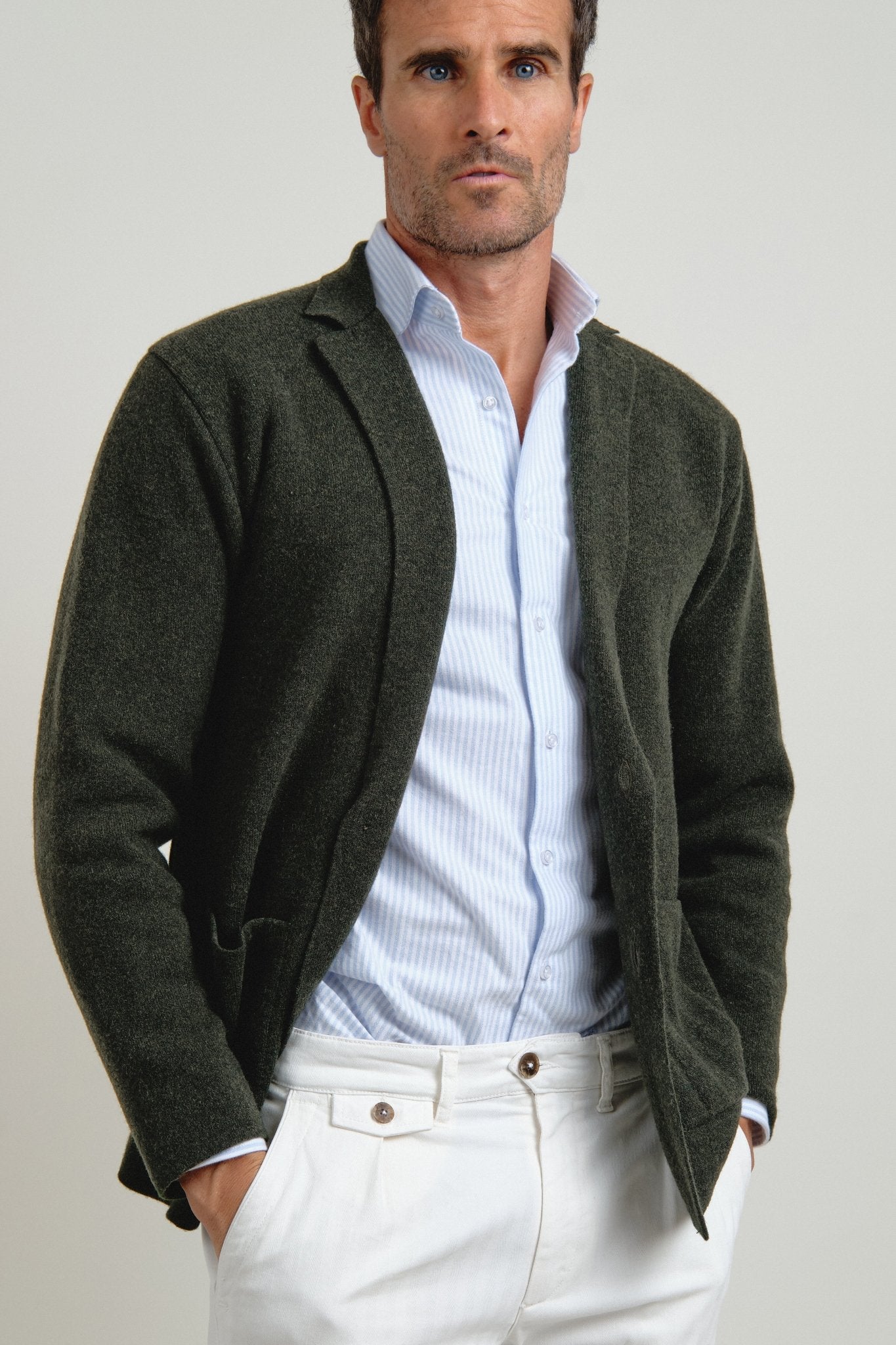 Los detalles de una chaqueta sastrera con la comodidad de un tejido de punto.