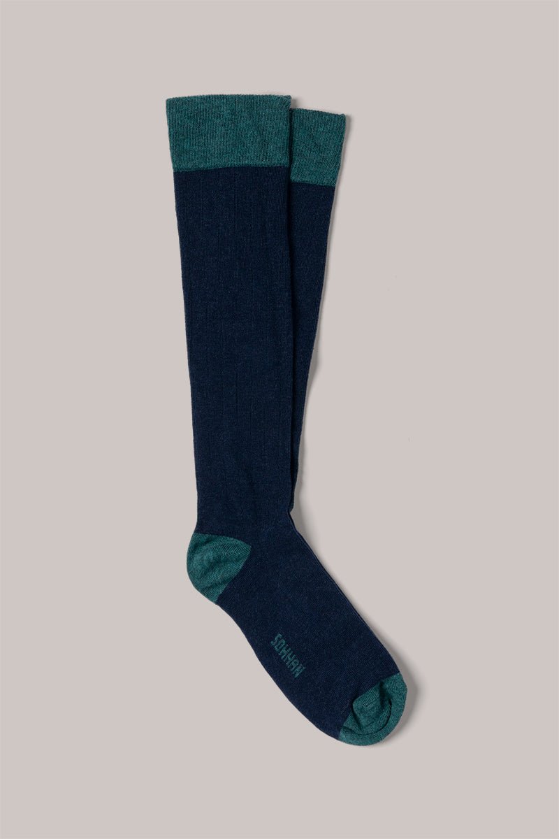Calcetines de caña alta de algodón, perfectos para la temporada. Su diseño en canalé estiliza la pierna y les aporta un toque distintivo.