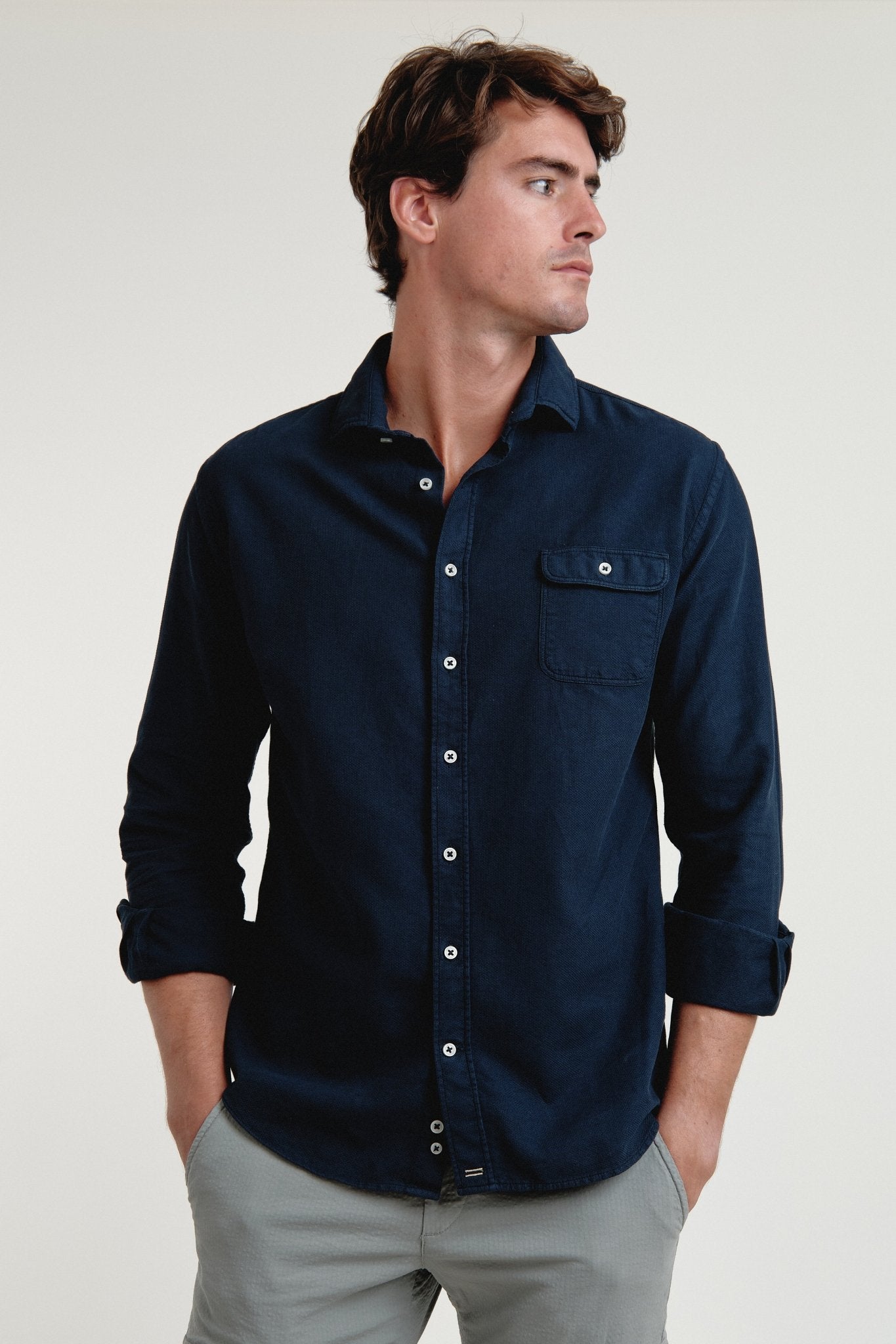 Además cuenta con un bolsillo, un detalle funcional que suma estilo. Diseñada para el hombre que busca versatilidad y detalles que marcan la diferencia, la Camisa Theo se mueve contigo: del trabajo al afterwork, de viajes a cenas especiales. Cada línea y cada celda de su textura habla de elegancia sin esfuerzo.