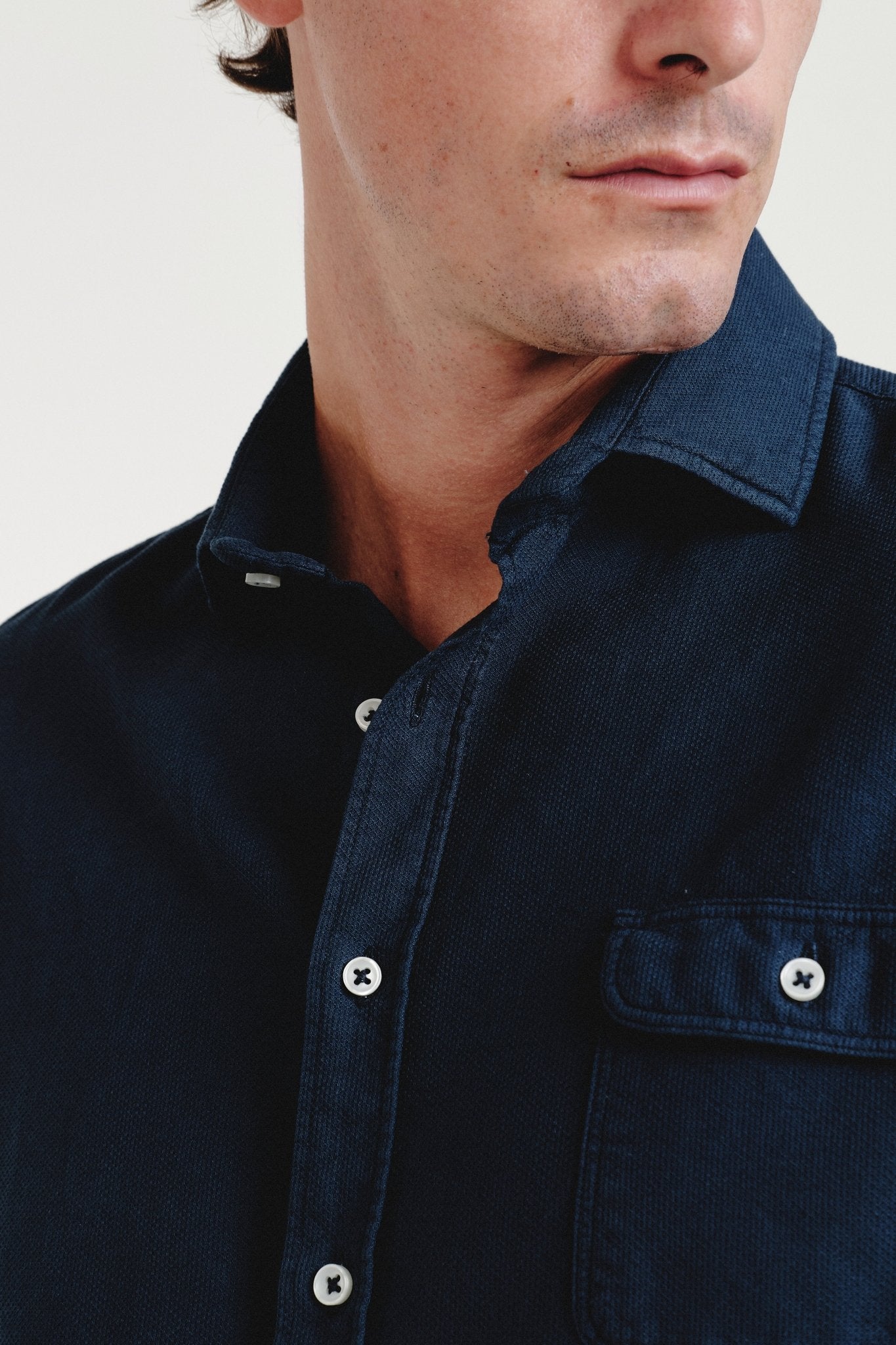 Su estructura de nido de abeja le da un carácter único: una textura tridimensional que aporta cuerpo, sofisticación y firmeza. Su tejido en 100% algodón mantiene la ligereza y la comodidad para cualquier ocasión.