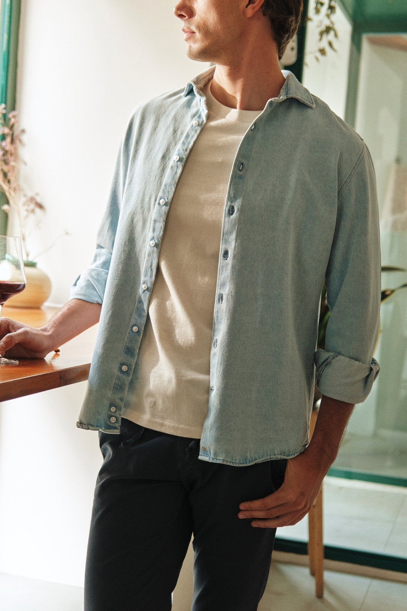 Inspirada en el estilo clásico del workwear americano, ofrece una versatilidad única: puede llevarse como camisa o sobrecamisa, adaptándose con naturalidad a diferentes estilos y ocasiones.