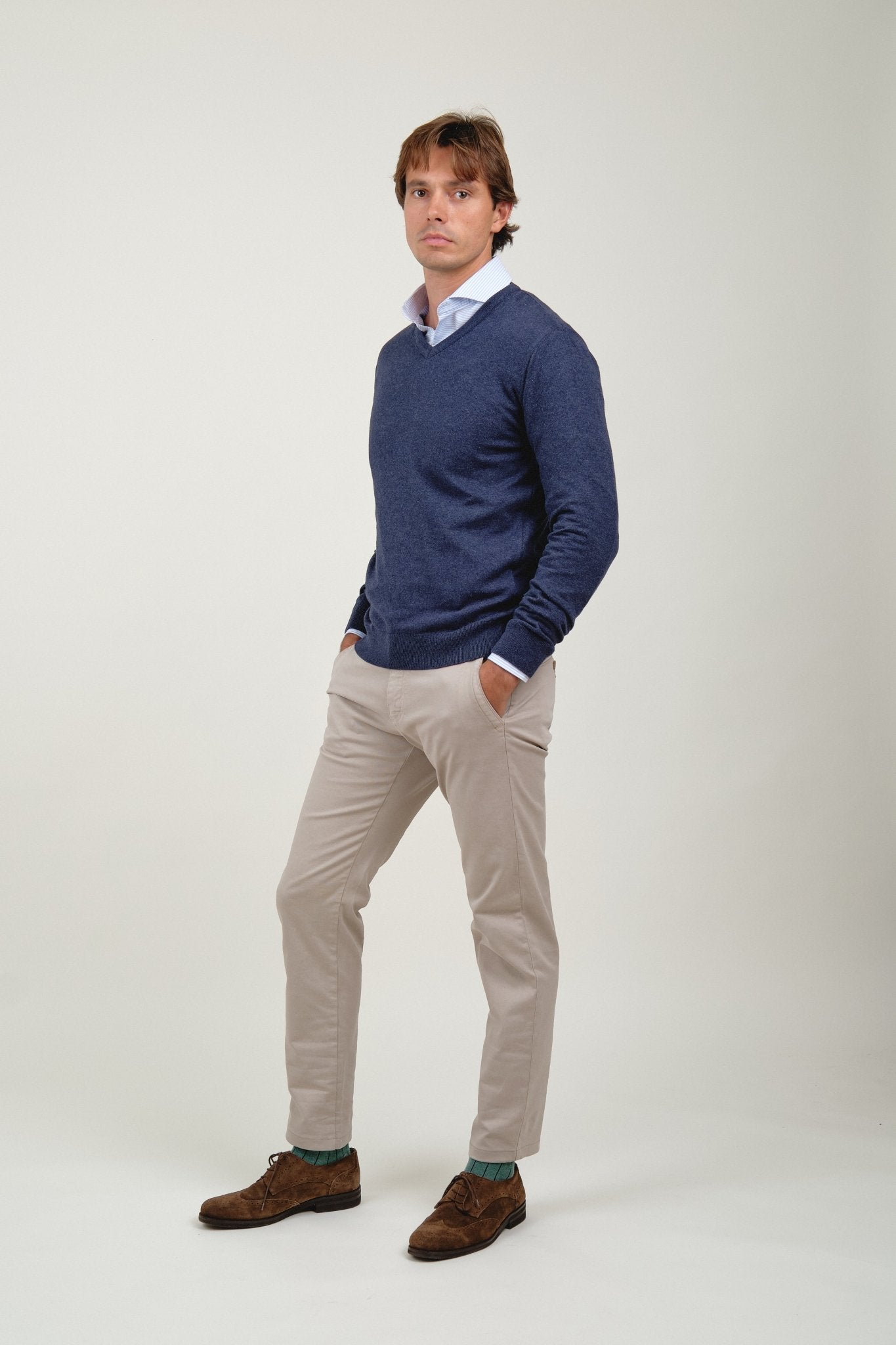 Con un regular fit, este jersey te sentará de maravilla siendo además muy combinable con cualquiera de nuestras camisas y pantalones.