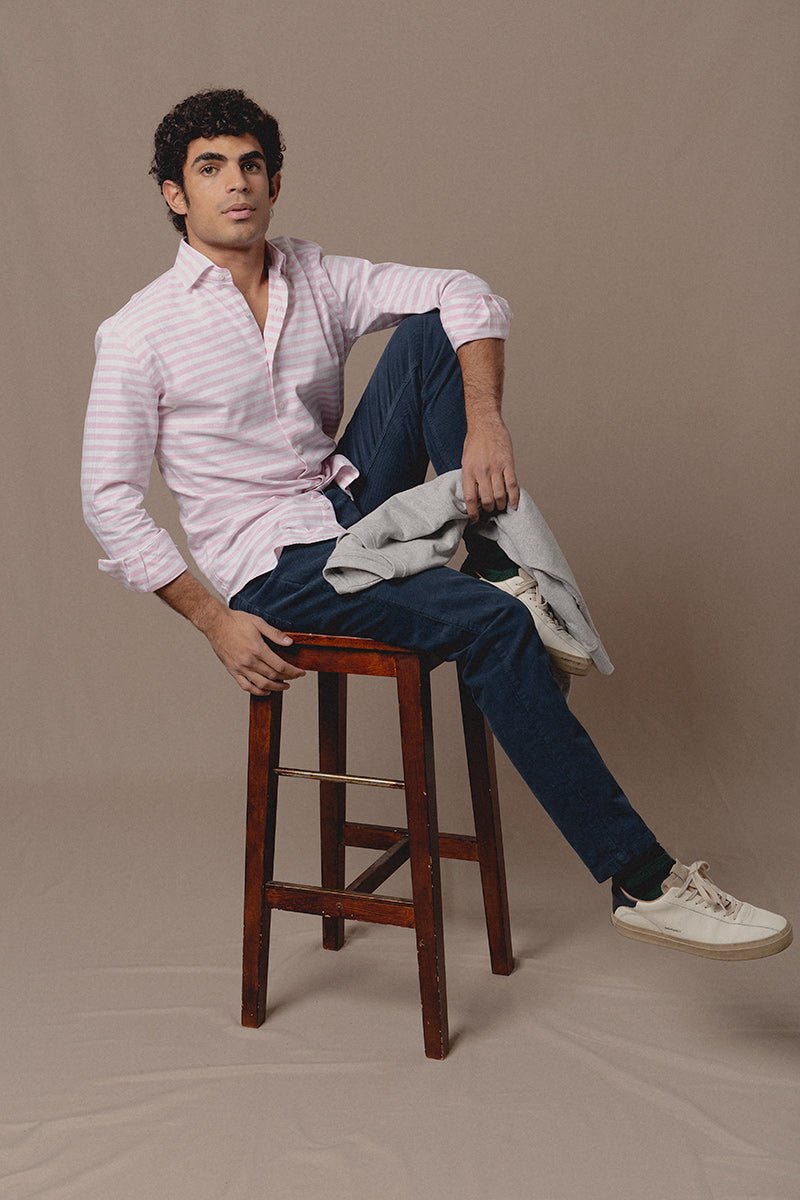 Esta temporada hacemos nuestro Best seller también en pana. Es un azul marino, indispensable en nuestro armario. El tejido de micropana es suave y un tono deslavado.